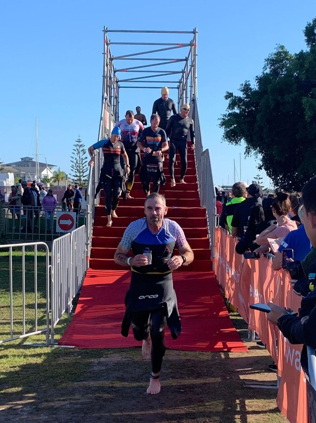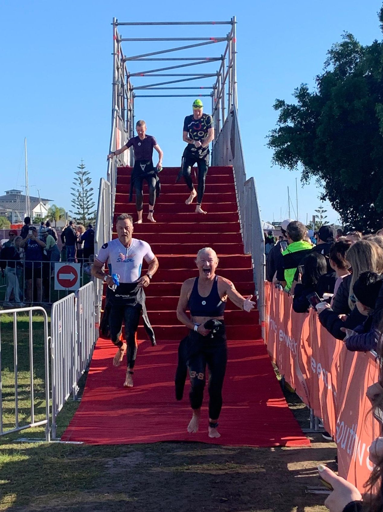 Anyone who has been through an ironman finishing chute, or cheered someone through an ironman finishing chute, knows that it is the ultimate highlight of the day. The finisher chute at Port Mac was no exception, although this time it was extra exciting seeing the top two pro male athletes finish within 46 seconds of each other. You don’t expect a sprint finish in the last 200m of an ironman, and it was incredibly exciting.