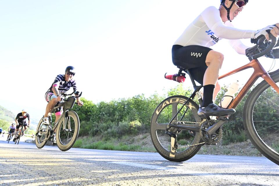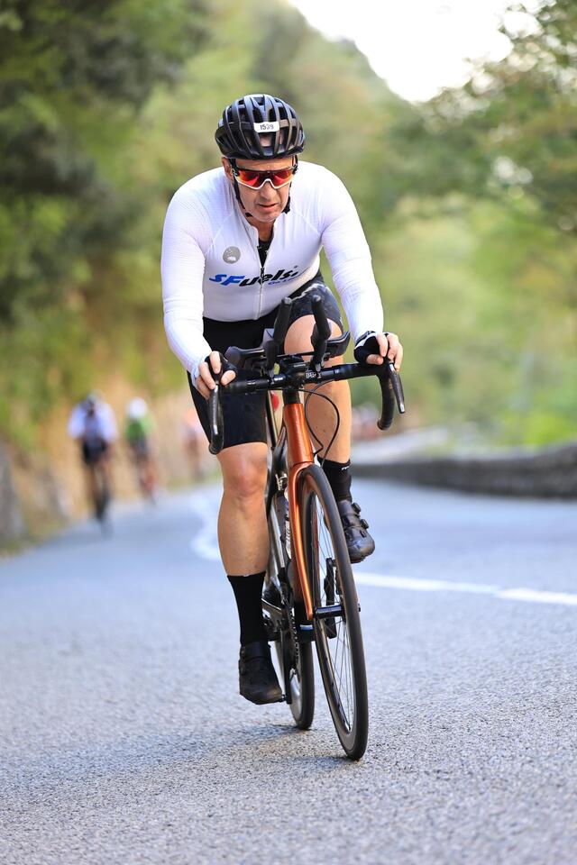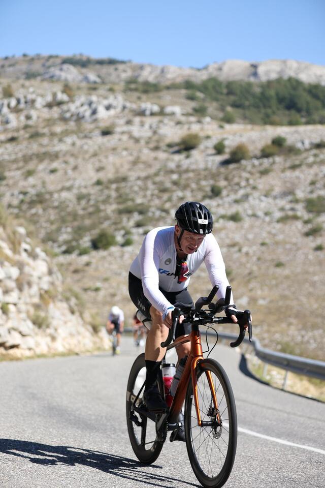 After that was the first descent which was absolutely mental with high speed cornering with literally hundreds of metres of sheer cliff face to go over if you got it wrong. At about 120km the fun was over as it went again for another 10km. By this stage legs were having spasmodic cramps on inner thighs and I had to keep telling myself I can’t stop peddling as I won’t finish. Once at the top we went down again and I cut absolutely sick and was so happy having road bike that allowed me to gain many places making up what I had lost in hills.