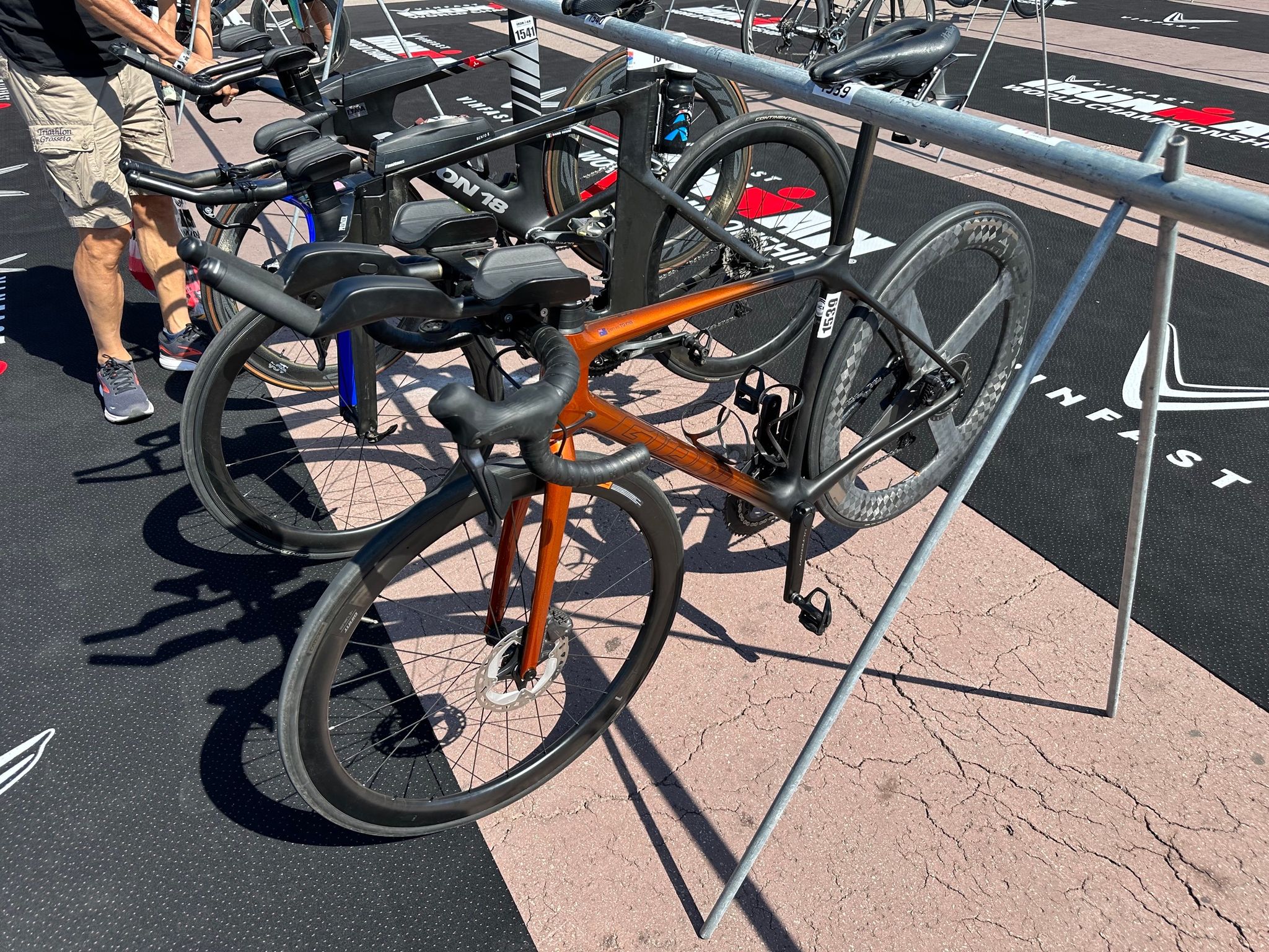 The Swim was an awesome course format with the exception of the last 800m that was chaotic as we caught all the slower swimmers from the earlier waves. Overall I was pretty happy out in around 1:05. In T1 I had a rookie Frodeno moment forgetting to completely remove my swim skin, as it was the first time I had worn one and had to go back to bag drop and remove it. The swim exit to get to my bike felt like forwever away as the rows were very narrow, and there were soooo many rows.