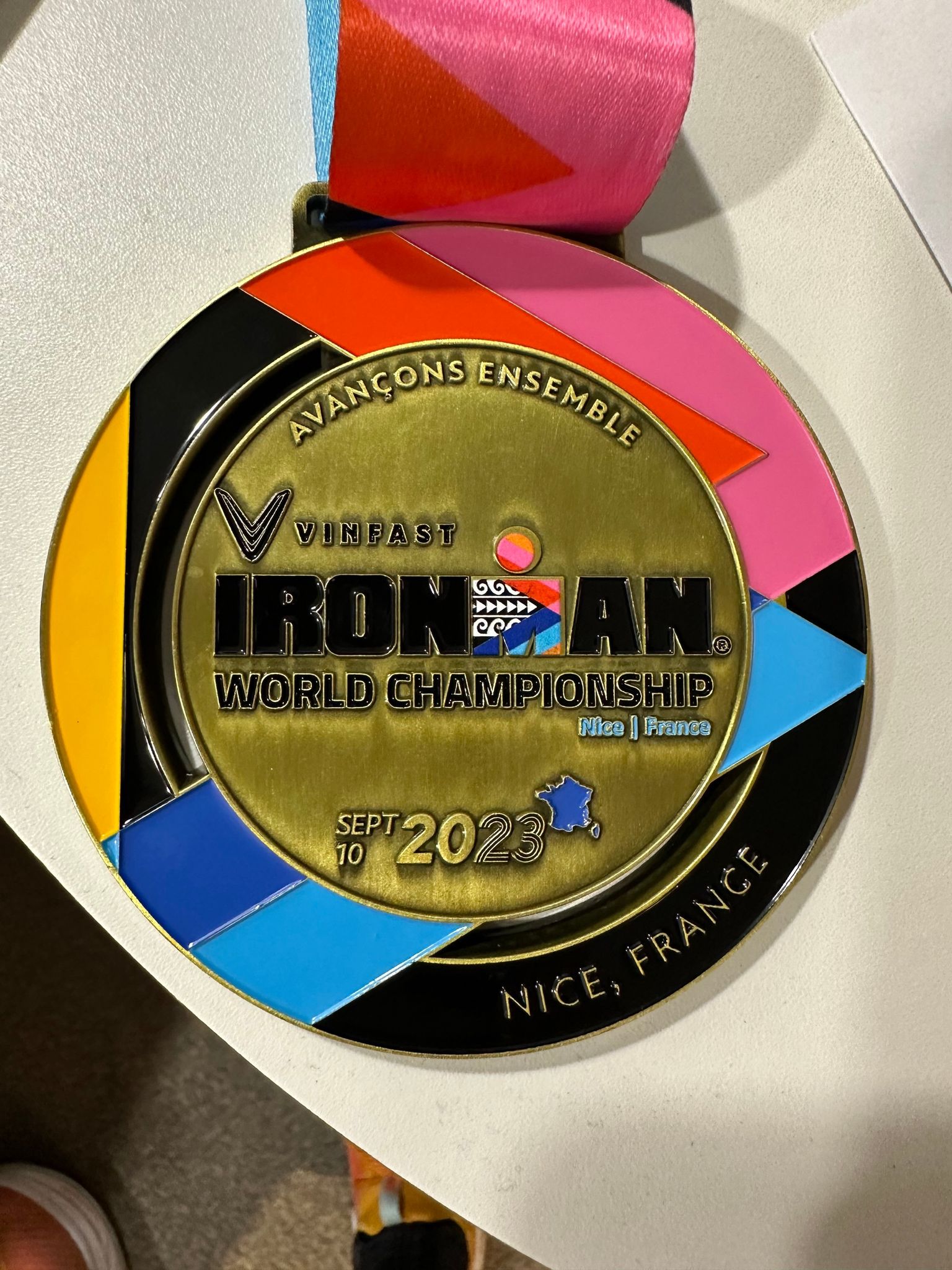 Although not my greatest finish, it still had amazing finish line vibes and the French, and every other countries supporters were amazing and all hung around until the end. It felt like I had won the event coming over the line with the atmosphere being so electric. The age Group winner in my category(50-54) was none other than the very controversial Alexander Vinokourov, ex Pro Cyclist in the dark days of cyling and current General Manager of the Astana team. My claim to fame will be that I beat him out of water by 10min.