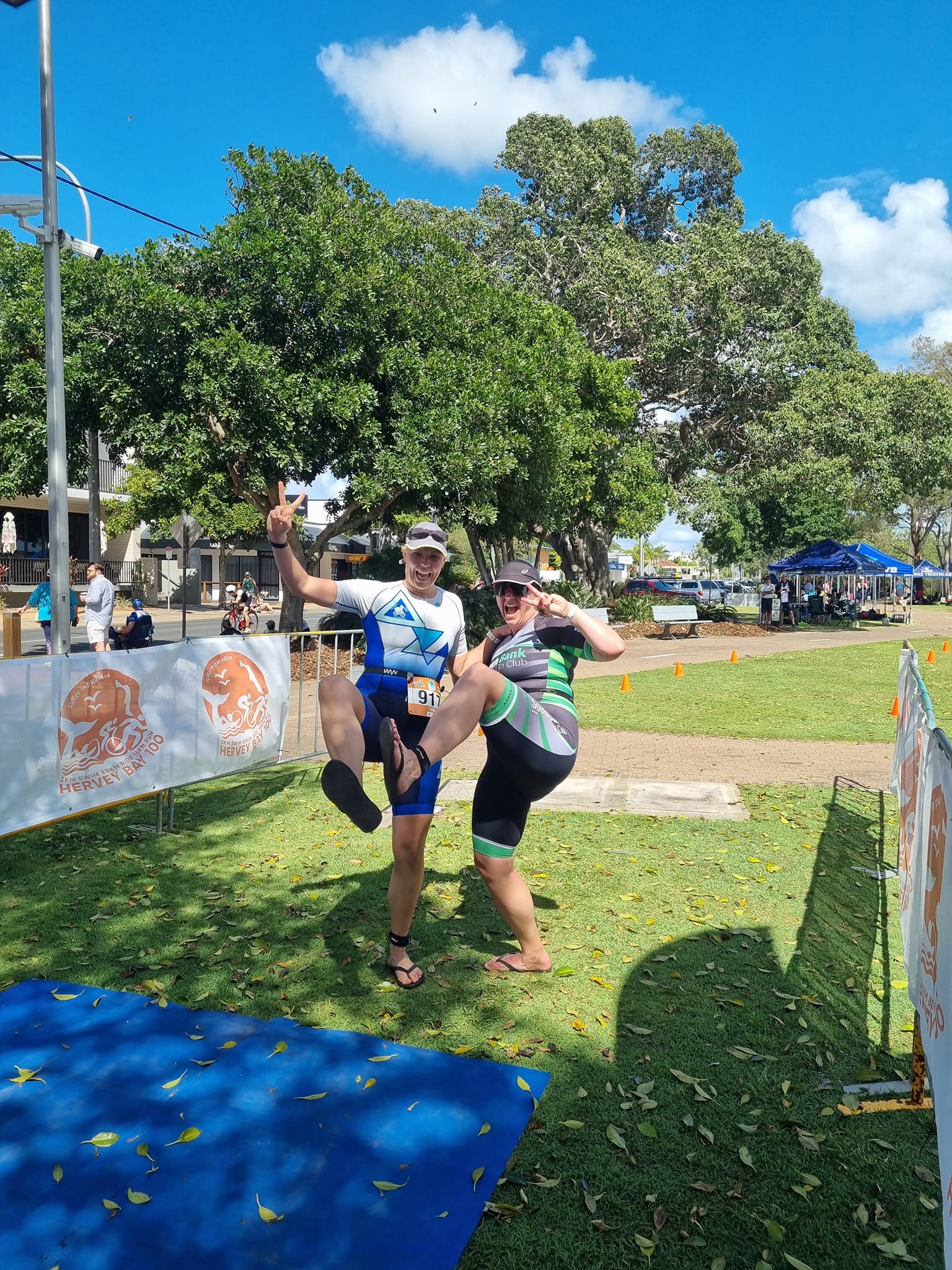 Getting an early start on Sunday morning, the Bennets were on point, with Steve absolutely smashing it and coming first in his age group and Tarn finishing at a cracking pace to take 3rd in her age group. If only whale tails were given for the 50…. Fi and Glen also got their fiddy on, with Fi making the race her own by stopping off at the tent on her way to the finish chute to change into her thongs so she could dance across the line in style.